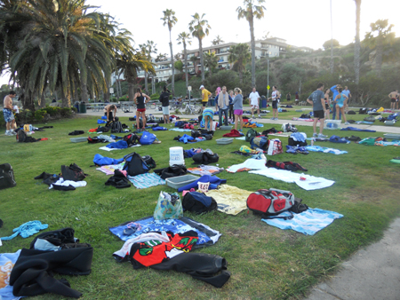 50 plus swimmers prep for their pre-run, 1 mile swim. They must have warmer blood than me!